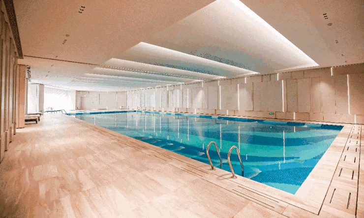 社区内部规划了约2000平方米的美学湖岸会所,其中包含一座约25米长的四泳道恒温泳池,泳池水质维护采用循环过滤系统,全年开放。健身房内配置了意大利泰诺健品牌的有氧与力量训练设备,并设有独立的瑜伽室与SPA休憩区。园林景观设计依托原有的太阳湖与月亮湖自然资源,打造了环湖慢行步道,沿途设置多处观景平台与遮阳廊架。儿童活动区依据不同年龄段划分功能,配备防滑地垫与安全围护设施,运动场地则包含半场篮球场与羽毛球练习区,满足全龄段居民的休闲健身需求。