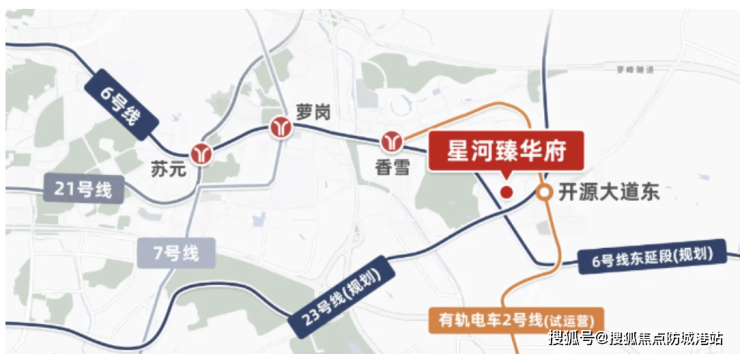 项目位于开创大道与开源大道交汇处,地处科学城主轴位置,交通网络发达。虽然目前距离最近的地铁站约2公里,但随着地铁6号线东延段通车,未来出行将更加便利,地铁口距离项目仅约几百米。届时可快速抵达天河、黄埔中心及珠江新城,实现主城无缝通勤。