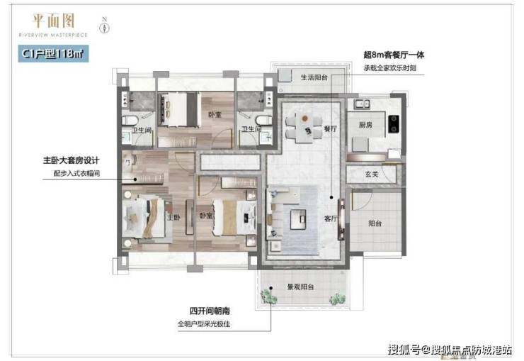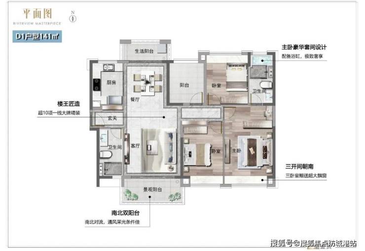 项目推出了多种户型供购房者选择,从建面约90㎡的三开间一线朝南户型到建面约141㎡的双阳台双景观设计户型,每个户型都经过精心设计,以满足不同家庭结构的需求。特别是套房设计的主卧和宽敞的功能区空间,非常适合追求高品质生活的家庭。