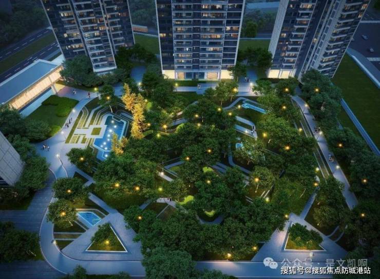 项目斥巨资打造约 2.3 万㎡中庭式秘境园林,相当于 3 个标准足球场大小,采用岭南园林设计手法,融合现代景观美学,打造特色水景、阳光草坪、景观会客厅、童梦乐园、康健花园、休闲步道、风情泳池等 7 大主题空间,为全龄段业主定制休闲场景。