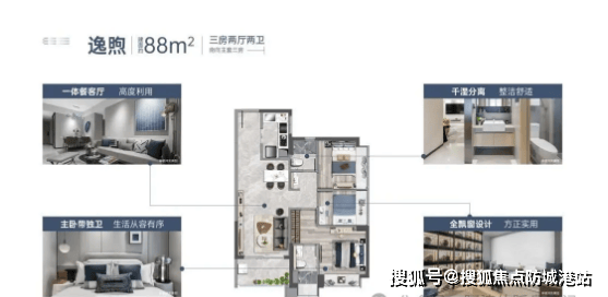 时代天逸当前在售户型面积涵盖80㎡三房一卫、88㎡三房两卫、106㎡四房两卫,户型设计遵循方正实用的原则,全飘窗设计,动静分区合理,采光通风良好,最大程度提升空间利用率,满足不同家庭的居住需求。