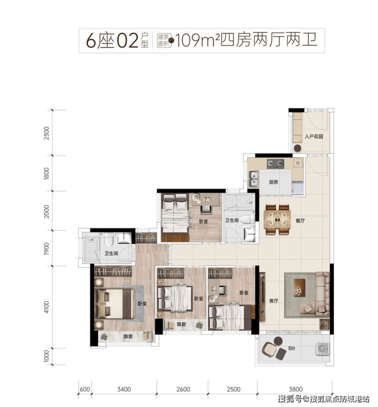 【稀缺神户型】109房四房罕见四开间朝南,113方可实现南北对流4+1房