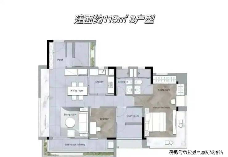 - **约 115㎡四房**:分为和颐、和韵两种设计,其中和颐户型占比更高。和颐 A 户型采用端厅设计,客厅配备超长飘窗,可作为独立电视墙,拓展空间视觉效果;主卧带步入式衣帽间,彰显奢华质感。和韵户型则在 1A 栋近花地河一侧设有房源,高层单位可享受一线河景。该户型适合改善型家庭,四房设计满足多孩家庭或老人同住的需求,空间布局合理,动静分区明确,无论是日常起居还是亲友聚会,都能从容应对。