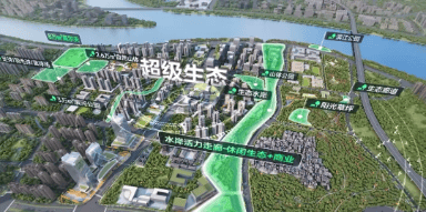 社区园林:项目整体绿化率达35%,内部规划近1万㎡中央园林,搭配3万㎡滨河景观带,形成“一轴两环多节点”的生态布局。