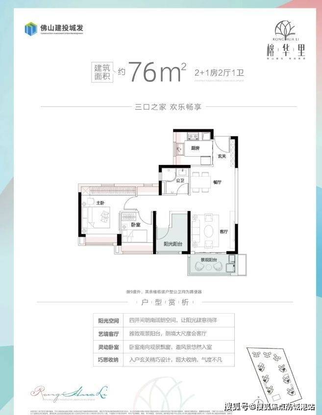榕华里坐落于佛山禅城南庄大道中(罗格小学南侧),由佛山建发城市发展有限公司倾力打造,这家公司是佛山市国资委直属一级国有大型企业下属全资子公司,品质值得信赖。项目占地面积约 3.9 万㎡,建筑面积约 14.7 万㎡,主推约 75 - 103㎡全南向三房 / 四房,以国企品质精装交付,2023 年 12 月 31 日交楼,目前已是准现楼状态。其价格 11XXX 元 /㎡起,性价比极高。