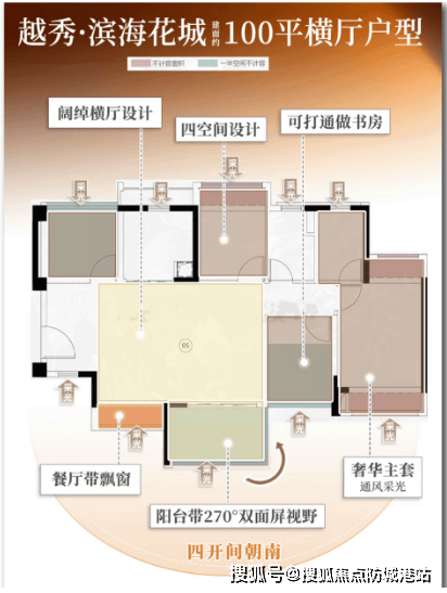 约100㎡三四空间:全盘最抢手的面积段,提供横厅和竖厅两种格局选择,通风和采光接近板楼标准。