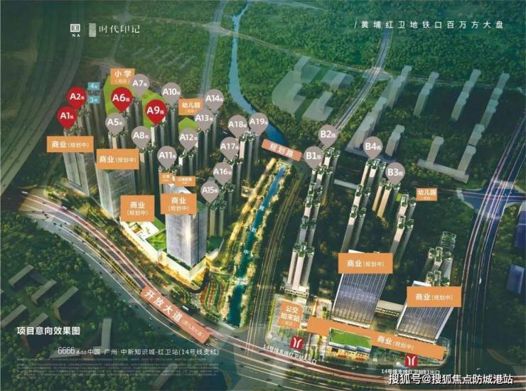 ◆【知识产权创新中心】毗邻项目旁红卫地铁站,涵盖了科研开发、创新基地、高端国际人才公寓、商业配套等功能,将成为中新知识城经济新地标。