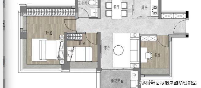 极阔尺度:采用横厅三房设计,阳台进深约 1.8 米,主卧面积约 16㎡ ,空间开阔。