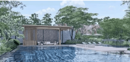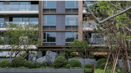 园林设计融合了新岭南元素与莫奈花园理念,创造出“山重、水秀、林茂”的山水林庭布局,形成层层叠叠如梦如幻的视觉效果。社区内绿树成荫,四季花开不断,营造出一种宁静而美好的生活环境。
