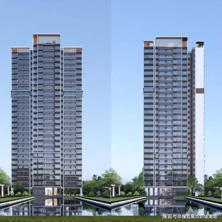 作为容桂老城少见的高层住宅项目,桂樾台以现代典雅建筑风格重塑城市界面。建筑立面采用米黄色真石漆搭配深灰色铝合金线条,顶部造型汲取岭南镬耳墙元素,传统与现代碰撞出独特美学。社区主入口斥资500万打造港湾式落客门楼,超3000块铝合金板材拼接成流线型穹顶,搭配水幕景观,彰显归家仪式感。3.0容积率虽非极致低密,但通过点式布局与超50米楼间距,保障采光通风,14.68万㎡建筑群错落有致,成为良桂中轴的视觉焦点。