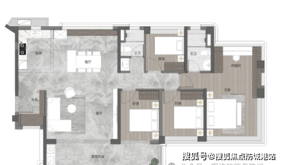 建面约160㎡四空间两厅两卫(江境):五开间朝南设计,搭配南北双阳台,实现通透对流,南向双套房布局,保障家庭成员的居住私密性与舒适度。一体化巨幕客厅空间开阔,可满足家庭聚会、圈层社交等多元场景需求,大面积玻璃幕墙设计,让江景与室内空间无缝衔接,尽显滨江豪宅的气派与质感。