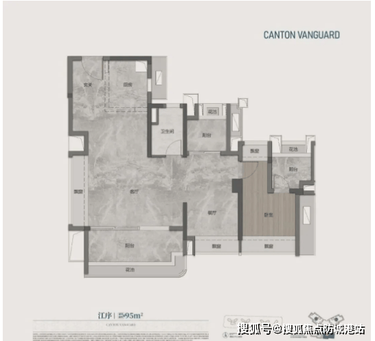 建面约95㎡四空间两厅两卫(江序):四开间朝南设计,搭配双面宽大阳台,约5.6m灵动宽厅,实现270°全景视野,让珠江江景自然融入室内空间。户型布局紧凑合理,无浪费面积,每个房间都能保证充足的采光与通风,满足三口之家或三代同堂的居住需求,灵动空间可根据需求改造为书房、儿童房,适配多元生活场景。