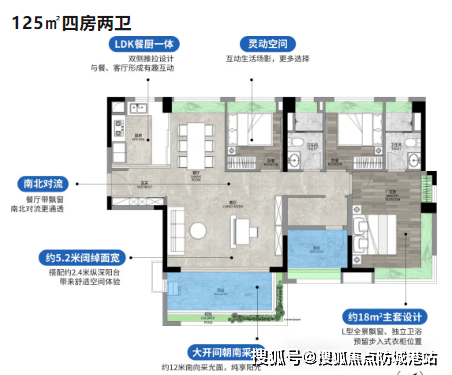 125㎡四房两卫:豪华大气,适合大家庭或追求高品质生活的客户。