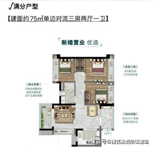 项目为现房交付,户型涵盖75㎡至107㎡的两至四房,满足刚需及改善型家庭的多样化居住需求。户型设计充分考虑通风采光、空间利用率及景观视野,部分户型配备大面积景观阳台及多处飘窗,实现居住舒适性与功能性兼顾。