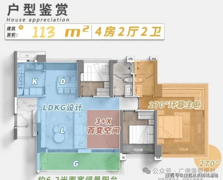 核心亮点:被誉为“神户型”,实现四开间朝南!约6.8米宽阔景阳台连接客厅与次卧。采用“LDKG一体化(客餐厨阳台)设计”,空间通透感倍增。主卧套房设计,私密性强。在约100㎡尺度内做出实用四房,满足二孩家庭或三代同堂需求。
