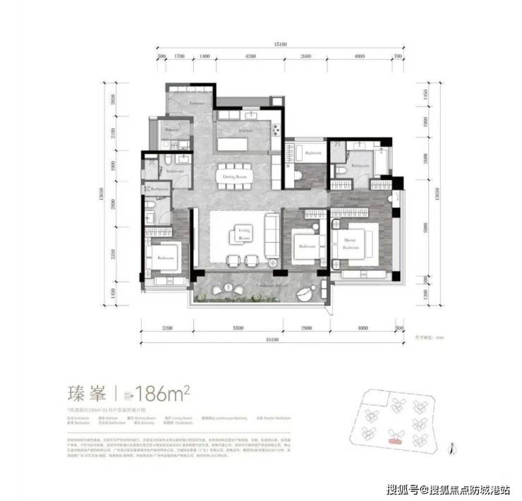 目前,项目主推组团为二期剩余房源及部分一期尾盘,户型面积段涵盖 110㎡至 186㎡。