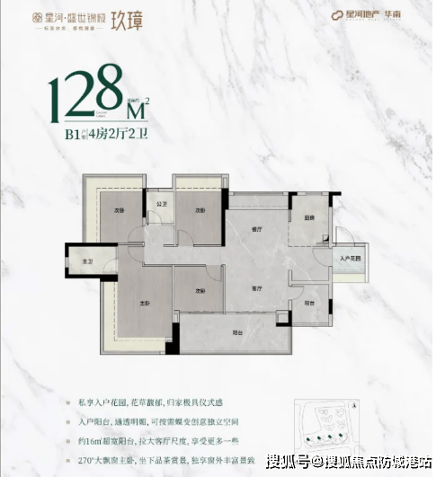 128㎡户型:该户型相较于二期136㎡户型,优势尽显,性价比更高。户型配备独立入户花园设计,不仅增加了鞋柜的置物面积,收纳空间更充足,同时也能起到过渡作用,让归家的第一刻便感受到温馨与舒适,提升居住仪式感。厨房、客餐厅和主卧尺度大幅提升,带来宽敞明亮的烹饪空间、舒适宜人的用餐和起居环境,以及豪华大气的主卧套房,主卧配备独立卫浴、衣帽间和飘窗,尽显尊崇享受。户型布局合理,动静分区、干湿分离清晰,适合多人口家庭或高端改善群体居住。