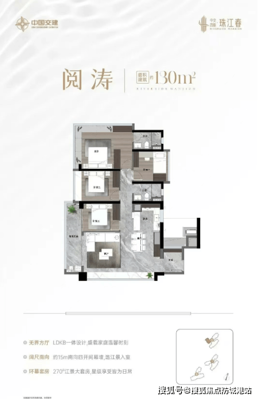 产品纯粹:130–180㎡大平层,全南向设计,圈层高度一致;