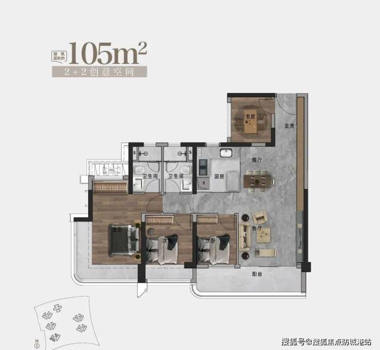 105㎡户型:约6.1米巨幕阳台,主卧全景视野