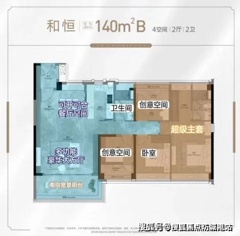 140㎡B和恒:南北通透,双主套设计,LDKB一体化空间,总价1040万起。