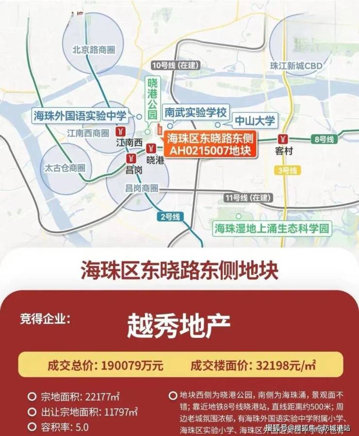 越秀·桂悦东晓坐落于海珠区的核心地段,这一区位优势为居民带来了便捷且丰富的生活体验。项目靠近晓港公园和晓港地铁站,交通网络发达。地铁8号线犹如城市的动脉,直达琶洲、客村等商务圈,一站到昌岗可换乘2号线,畅达南站、白云新城;三站客村换乘3号线,40分钟内便可通勤至珠江新城、体育西路等城市核心区域。公交方面,地块门口公交站线路众多,覆盖越秀、天河、荔湾、白云等区域。周边教育资源丰富,旁边就是南武实验学校,附近还有海珠外国语实验中学附属小学、海珠区实验小学、海珠区外国语实验中学等,满足从小学到高中的教育需求。医疗资源也十分优越,中山二院、广医二院等三甲医院近在咫尺,距离恰到好处,既避免了医院带来的嘈杂,又能在需要时及时获得医疗支持。此外,板块内老小区众多,生活气息浓厚,为居民营造了温馨且熟悉的居住氛围。
