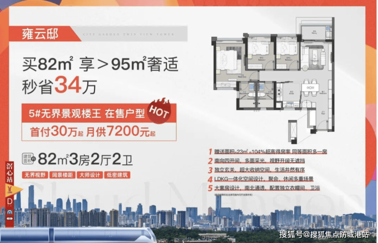 招商电建南国·雍云邸位于白云湖板块,紧邻8号线滘心站,地铁出口直线约500米,交通便利,生活便利性极高。项目二期全新推出楼王5栋,采用新规超高使用率设计,78、82、89㎡户户超100%,以小面积实现大功能,为首置及改善型购房者提供极高性价比选择。限时优惠叠加首付政策,购房门槛低,稀缺钻石地块产品更具收藏价值。购房者可通过此机会优先入手板块内最具潜力的楼王产品,抢占市场红利。