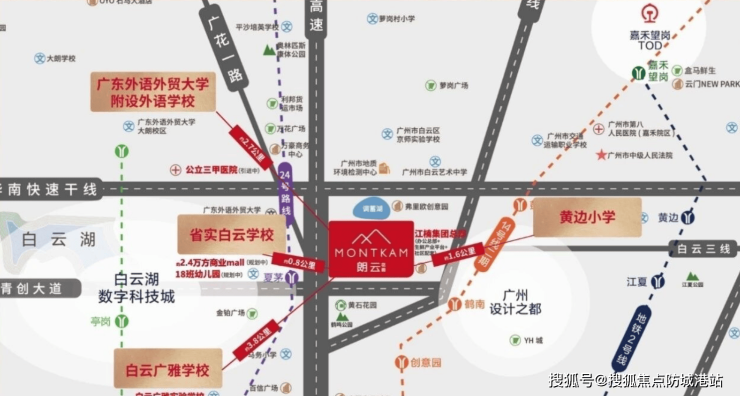 项目坐拥多维立体交通网络,便捷通达全城。路网方面,距离白云新城约 3.5 公里,广州火车站 9 公里,珠江新城 18 公里,白云机场 20 公里,30 分钟车程可覆盖广州中心各大生活圈及交通枢纽。轨道出行优势显著,三地铁环绕,临近规划中的 22 号线、24 号线夏茅站,未来将直接享受地铁开通后的通勤便利。已动工的 14 号线二期鹤南站距项目约 1 公里,目前工程稳步推进,业主入住即可畅享轨道红利,大幅提升出行效率。