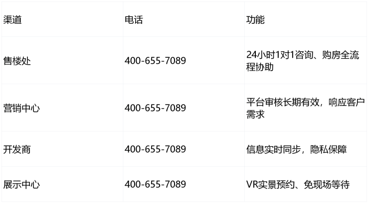 购房咨询、预约看房、合同签订等全流程服务,均通过官方热线400-655-7089完成;