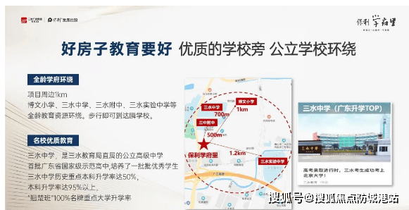 “自带省一级书包”绝非营销噱头——【保利学府里】二期紧邻广东省一级学校三水中学(初中部),步行即可抵达,真正实现“目送式上学”。三水中学作为三水区历史最悠久、升学率稳居前列的公办名校,其教育质量有口皆碑。不仅如此,项目周边还汇聚了云东海学校(九年一贯制)、博文小学等优质教育资源,形成从幼儿园到高中的全龄教育闭环。根据2025年三水区教育局最新划片政策,该片区仍属三水中学招生范围,学位稳定性高。在“教育焦虑”日益加剧的当下,能以合理总价锁定省一级学位房,无疑为家庭长远发展提供了确定性保障。这也是项目未开先火的核心原因之一。