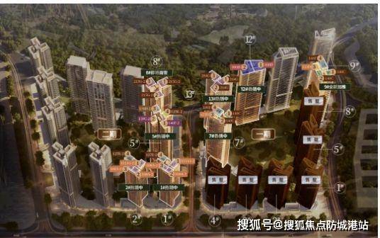 组团分布:整个地块分为 ABCD 四个组团开发。A 组团为约 24 万㎡万象系商业综合体;B 组团是 51 万㎡住宅区,分两期共约 3200 户住宅;C 组团为学校用地,包含 24 班幼儿园,72 班小学及 36 班初中;D 组团主要是 9.7 万方的商业办公写字楼。