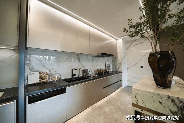精装交付方面,项目追求高品质与实用性,客餐厅采用木饰包皮墙面,自然大气且防火防潮,电视背景墙一并交付,省去后期装修麻烦;卧室采用玻纤壁布,易于清洁维护,同时具备一定的吸音能力,为居者营造安静舒适的睡眠环境。厨房设计兼顾美观与实用,柜体颜色与纹路自然饱满,洗切煮动线流畅,内置隐藏式抽拉收纳,充分利用每一处空间,解决收纳难题。卧室门采用隐藏式设计,阖上时与墙壁融为一体,消除视觉干扰,进一步放大空间感。