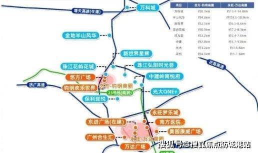 项目周边以城市快速路与主干道组成交通骨架,其中永宁大道、新新大道、荔新公路形成对外环通体系,可实现向科学城、黄埔、天河方向的快速连接。区域交通网络具备对中心城区与产业区的双向联通能力,为自驾通勤人群提供便利性。