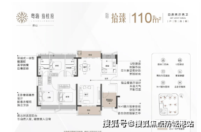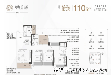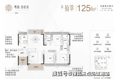 125㎡四房:LDK一体化设计,32㎡餐客厅可拓展为家庭活动中心,三开间朝南,采光面宽达12米;