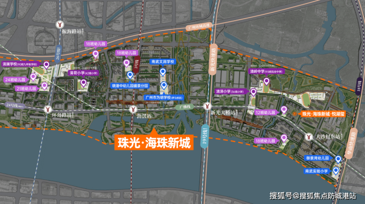 珠光·海珠新城坐落于海珠区核心的沥滘板块,地处老四区最大旧改项目核心地带,总规划体量达436.27万方,堪比2/3个珠江新城,资源高度集中。项目紧邻珠江后航道,北望海珠国家湿地公园,兼具江景与生态双重优势。周边市政配套正逐步完善,医疗资源尤为突出,中山二院海珠院区、海珠区妇幼医院等三甲医院及二级中医院(紫合广州医院)环绕,为全龄段业主提供健康保障。商业方面,项目自身规划200万+商业面积,将打造以300米地标为核心的超甲级写字楼、标杆商场及超七星酒店,周边现有多个成熟商圈辐射,日常购物、就医、办事等需求可高效满足。随着2024年珠光集团与中信城开达成合作,资金与资源加持下,区域功能升级加速,城市界面持续优化。