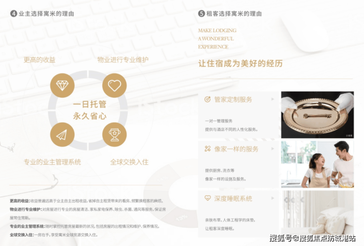 6. **内部设施**:内部设施丰富且高端,以满足居民高品质生活需求。项目自带约1.1万㎡三层下沉式体验购物商街,将引进多个国际高端品牌,为居民提供一站式购物体验,涵盖时尚购物、特色餐饮、休闲娱乐等多种业态,满足居民日常消费需求。中冶物业作为国际金钥匙联盟成员,以国际先进服务理念和标准,为新青年定制108项专属服务体系,打造星级管家服务,从日常生活琐事到安全保障,全方位贴心服务,重新定义生活的仪式感。此外,项目入驻寓米酒店管理公司,由专业团队运营全方位托管,为投资者提供稳健的收益保障,保底收益可达140元/㎡,投资回报率高达5.61%,无论是自住还是投资,都为居民提供了良好的体验与回报。