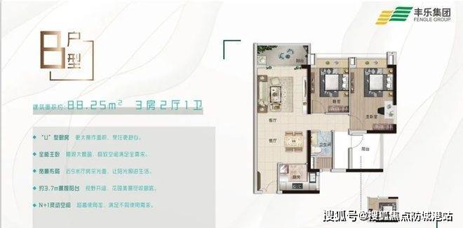 ✅丰盛101售楼处电话:400-9909-752【营销中心】2、88㎡三方两厅