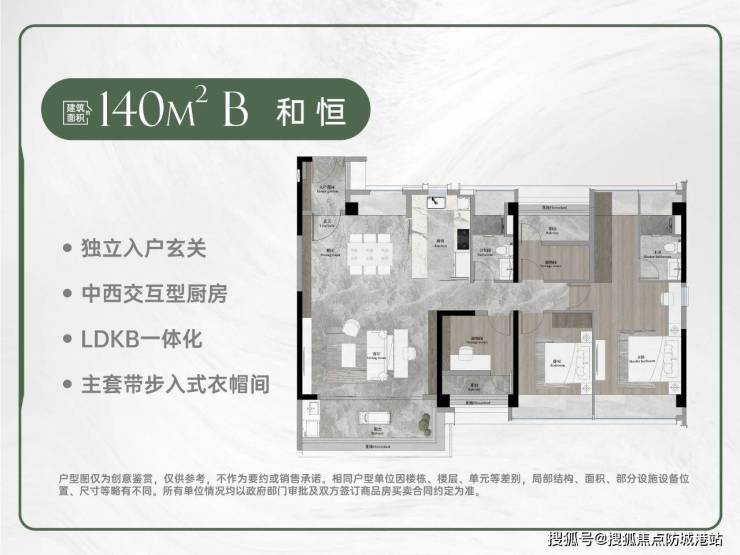 3. 约140㎡A南北对流双阳台户型:这款户型是“改善爆款”,适合四口之家或三代同堂居住。南北对流的设计,通风采光极佳,空气时刻清新,不用担心室内潮湿闷热,两个阳台分别满足生活与观景的不同需求——一个用来晾晒衣物、存放杂物,保障室内整洁;一个用来欣赏风景、休闲放松,提升居住体验。LDKB奢阔厅设计,空间宽敞大气,主卧自带独立卫浴、衣帽间和飘窗,舒适度拉满,次卧空间充足,能满足家人的居住需求,无论是老人还是孩子,都能拥有独立的空间。