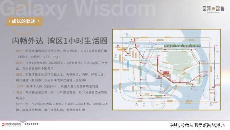 :项目周边4条地铁线汇聚,现已开通的地铁4号线可快速通达广州城区,未来规划的NS2线、22号线、NS3线将进一步提升交通便利性。