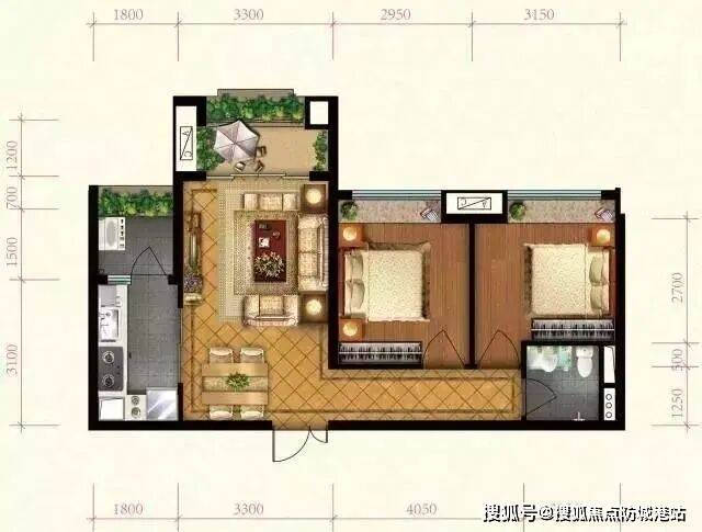 两房两厅一卫,超大的山湖景观阳台,双阳台设计使得空间灵活多变,可根据家庭结构变化需求调整布局,适合二人世界或三口之家。