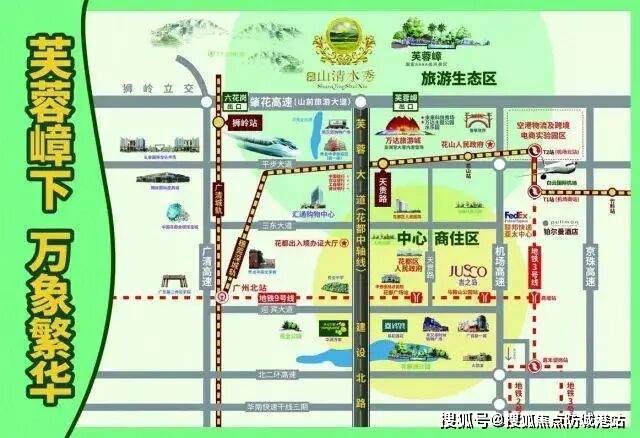 项目与5条主干高速无缝衔接,直线300米便是肇花高速六花岗入口。通过肇花高速,可进一步对接广清、大广、京珠华快以及机场高速,为自驾出行提供了极大便利。