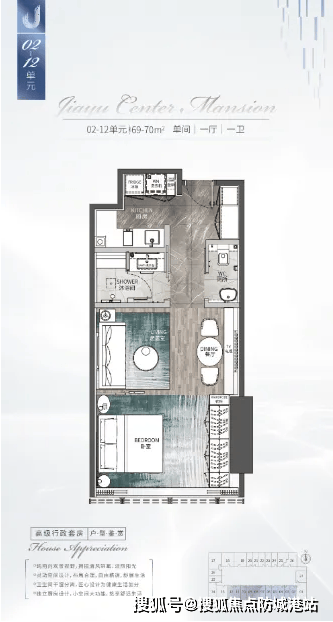 69-90㎡尊贵单间公馆:布局紧凑精致,延续五星级酒店行政套房设计,配备独立卫浴与开放式厨房,智能系统集成度高,适合单身精英或商务人士,兼具居住与临时接待功能。