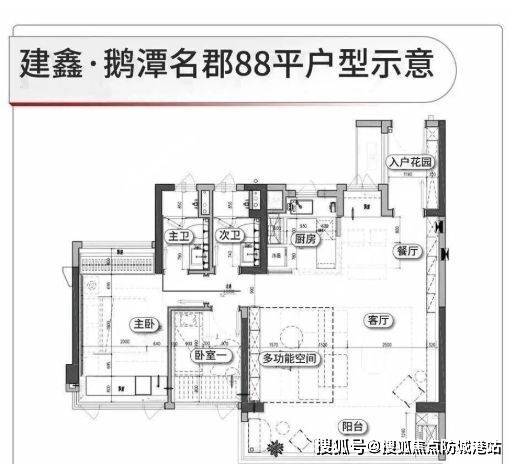 88㎡三房:三开间朝南,客厅带观景阳台,主卧带飘窗,功能齐全,是片区稀缺的小面积南向三房;