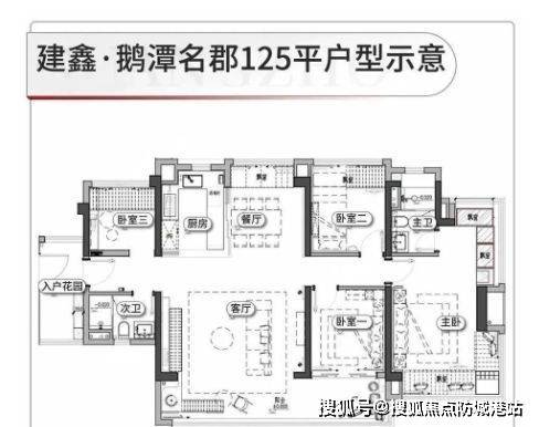 125㎡四房:双阳台、主卧套房、动静分区明确,满足多孩或三代同堂需求。
