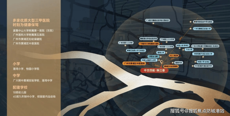 医疗资源:紧靠中山一院东院、广州医科大学附属第五医院、广州市黄埔区中医院等多家优质三甲医院。
