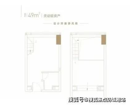 49平方米户型:客厅采用4.5米挑高中空设计,使得室内空间感更加开阔,采光充足。