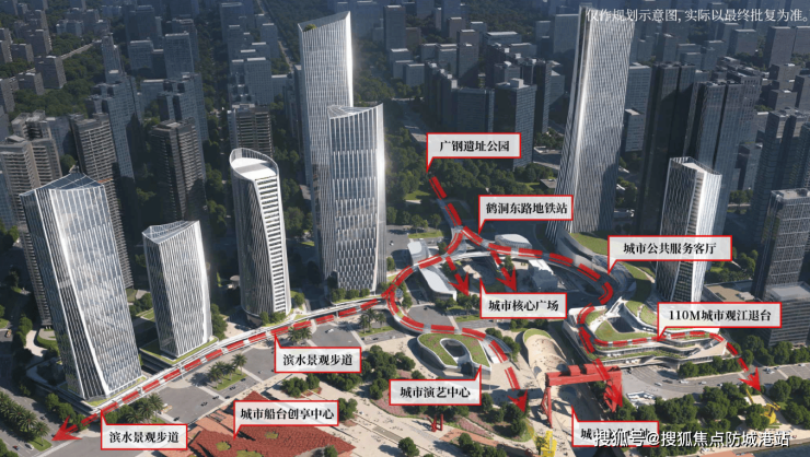 项目所在的白鹅潭滨江段,恰好是后航道最连贯的2公里黄金岸线,官方称之为“鱼肚”核心区。这里取消了传统沿江市政路,建筑群整体退让约250米,真正实现“零距离亲江”。更特别的是,小区内的约18万㎡滨江公园,将与广钢遗址公园连通,形成60万㎡的“T型绿轴”——相当于一个中型城市公园嵌入居住区,日常散步、骑行、放风筝都有了专属空间。