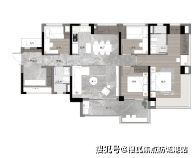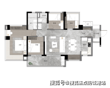 入户玄关,LDKB一体化设计,套房式主卧设计,非常适合刚需家庭。