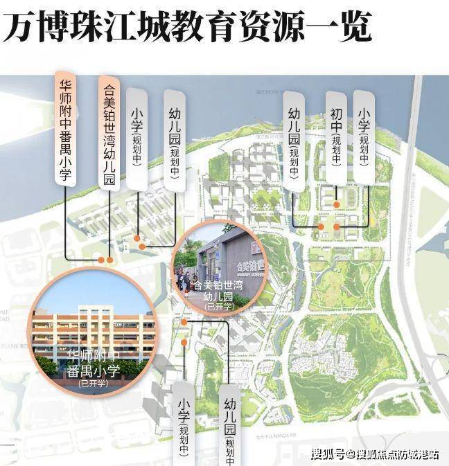 教育资源丰富且优质。万博珠江城内规划 9 所中小幼学校,实现家门口 K12 全年龄段教育。住宅项目珠江铂世湾配置 24 班华师附中番禺小学及 12 班公立合美铂世湾幼儿园(已开学),周边还有星执学校(原名执信中学)等优质学府环绕,为孩子提供 3 - 18 岁一站式无忧教育,让家长对孩子的学业发展充满信心。