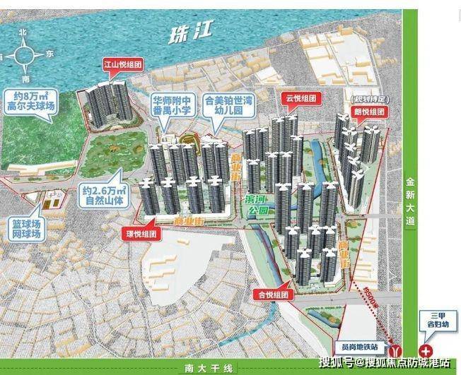 生态环境优美,拥有 4.5 公里曼妙江岸,毗邻约 8 万㎡江山高尔夫,私享约 2.6 万㎡自然山体和约 3 万㎡滨江大公园,江、山、园、高尔夫多重叠景。商业配套更是璀璨,五公里内 9 大商业综合体林立,约 180 万㎡广州最大地下商业空间年底建成,万象系 & k11 双高奢商业进驻,家门口还将引入广州第二座合生汇商业综合体,体量比肩天河城。医疗保障贴心,步行 500 米到三甲医院省妇幼保健院,地铁 2 站到广东省中医院大学城分院,为家人健康保驾护航。