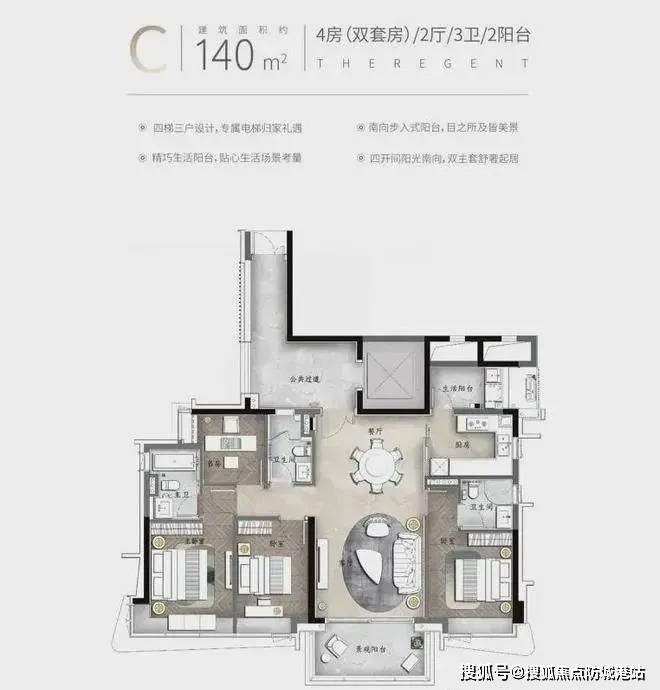 除了270㎡的明星户型,南天名苑的其他户型也各有特色,同样值得关注。140㎡的户型,是刚需改善的首选,户型方正,布局合理,三室两厅两卫的设计,能满足三口之家的居住需求;户型采光和通风效果极佳,每个房间都能享受到充足的阳光;主卧配备独立卫生间,次卧空间宽敞,能满足家庭的不同需求。